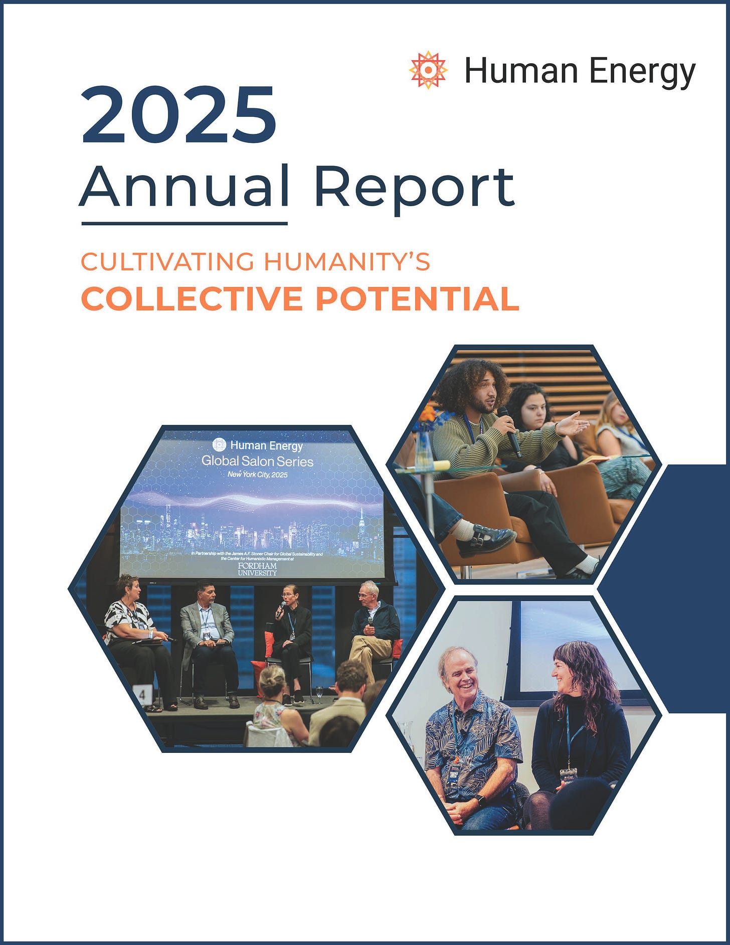 I am deeply grateful for the people who make this work possible. Our team brings rigor, creativity, and care to an ambitious undertaking that bridges research, education, media, and events. Our partners and collaborators-across disciplines, sectors, and generations sharpen our thinking and expand our capacity, helping Human Energy to operate as more than the sum of its parts. And our supporters make it possible to do work that is long-term in orientation, strategically built, and growing in global recognition and impact.